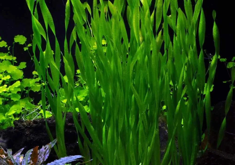 Vallisneria spiralis – a mais comum, com folhas lineares e crescimento rápido.